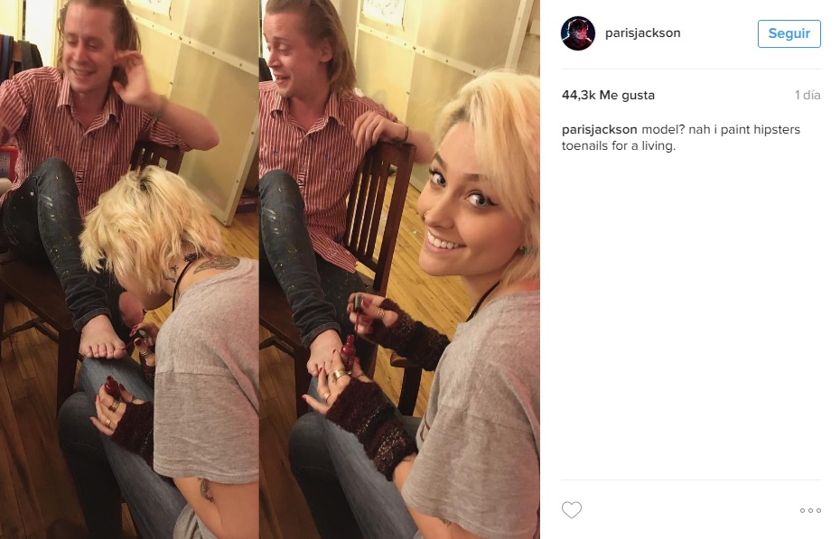 Sin embargo, ahora pudimos verlo en una imagen que publicó la joven de 18 años a través de su cuenta de Instagram, donde aparece la ex estrella infantil dejando que la hija del Rey del Pop le pinte las uñas. "¿Modelo? Nah, hago la pedicura hipster para vivir", escribió junto a la fotografía.