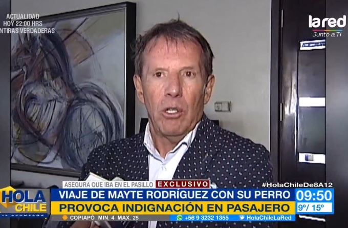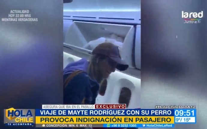 Uno de los pasajeros que iba en ese vuelo, Juan Carlos Cerda, acusó a Mayte de viajar con su mascota en la cabina sin caja de transporte. Según comentó en el matinal "Hola Chile", esta situación molestó a varios de los pasajeros del avión.