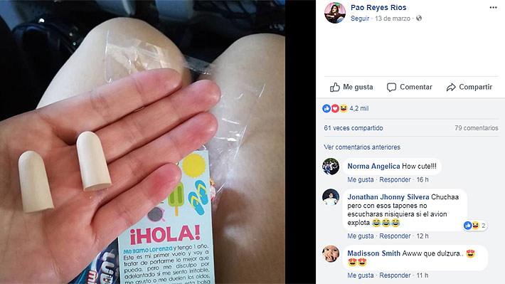 Además de una bolsa con tapones de oídos y dulces decía en una nota: "¡Hola! me llamo Lorenza y tengo 1 año. Este es mi primer vuelo y voy a tratar de portarme lo mejor que pueda, pero me disculpo por adelantado si me siento irritable, me asusto o me duelen los oídos (...) Espero que esto ayude a que tu viaje sea un poco más placentero. ¡Gracias!".