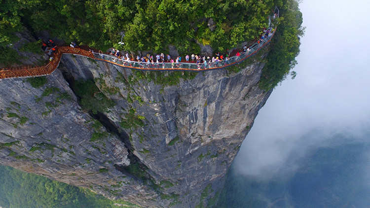 En China, la pasarela más alta del mundo se agrietó mientras los turistas pasaban tranquilos sobre ella, en el año 2015. El incidente se hizo viral y llamó tanto la atención que los promotores de la atracción decidieron añadir las roturas oficialmente, al menos simuladas, según consigna Gizmodo.