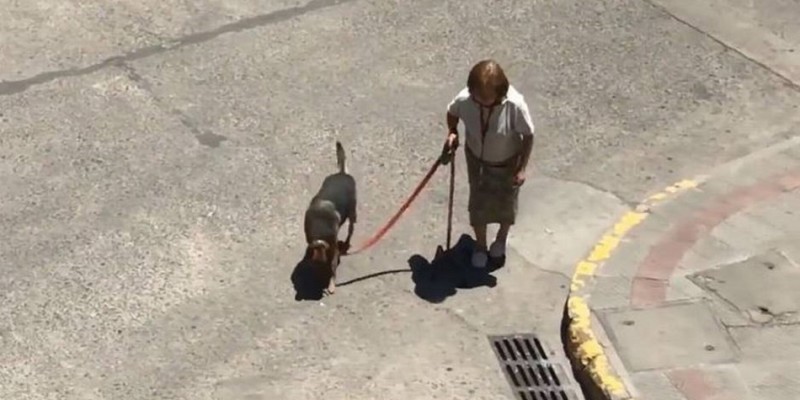 Un tierno momento se ha tomado las redes sociales luego de que una mujer de la tercera edad fuese captada en su paseo diario junto a su leal perro.