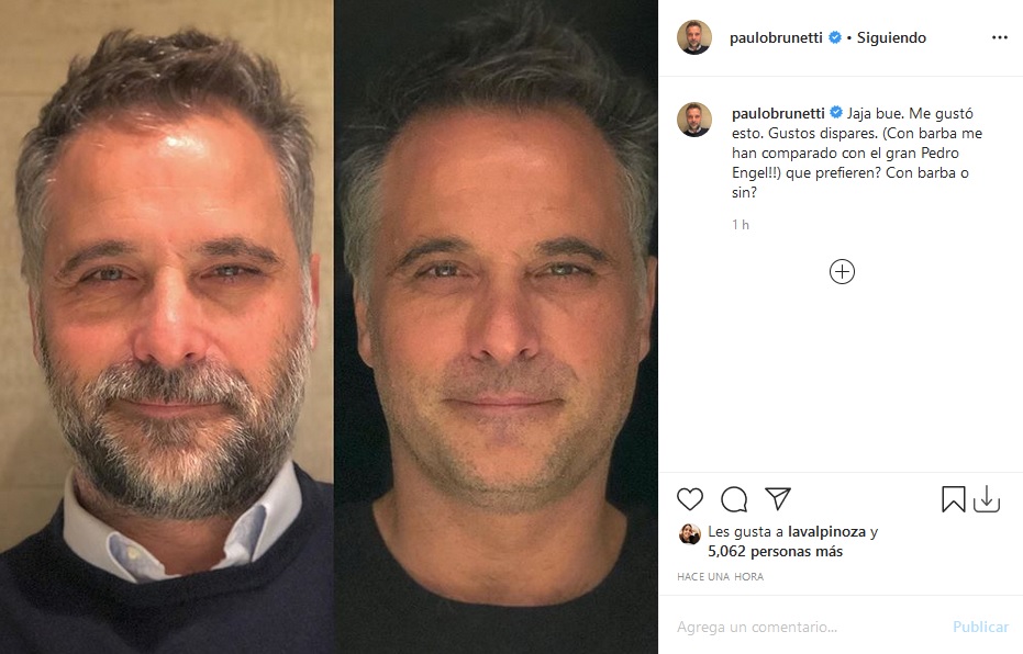 Ante las comparaciones, el actor se tomó todo con humor. "Jaja bue. Me gustó esto. Gustos dispares. (Con barba me han comparado con el gran Pedro Engel!!) que prefieren? Con barba o sin?", escribió entre risas compartiendo su actual look con el anterior.