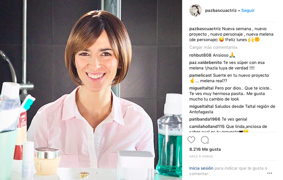 En su cuenta de Instagram, Bascuñán compartió una foto de su nuevo personaje y donde la vemos con un pelo mucho más corto y claro al que nos tenia acostumbrados.