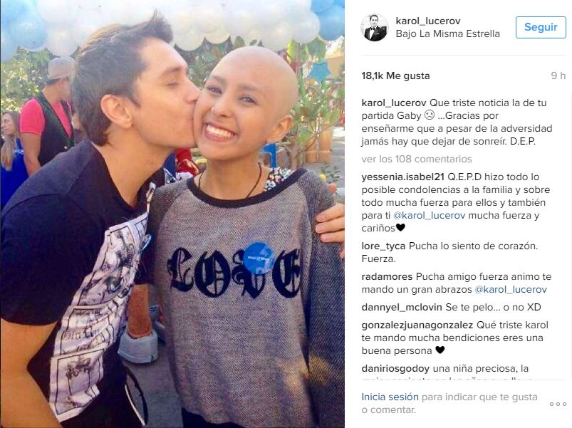 Se trata de Gabriela Valdivia, joven que compartió muchas veces con Karol Lucero, como se puede apreciar en la siguiente imagen subida a la popular red social Instagram. “Que triste noticia la de tu partida Gaby… Gracias por enseñarme que a pesar de la adversidad jamás hay que dejar de sonreír. D.E.P", comentó en su publicación.