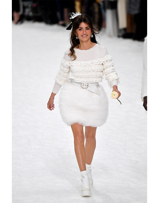 Pero la gran sorpresa, fue la presencia de la actriz Penélope Cruz sobre la pasarela. La actriz, que era muy cercana al diseñador, vistió de blanco y desfiló con una rosa de ese mismo color en la mano, para recordar a Karl Lagerfeld.