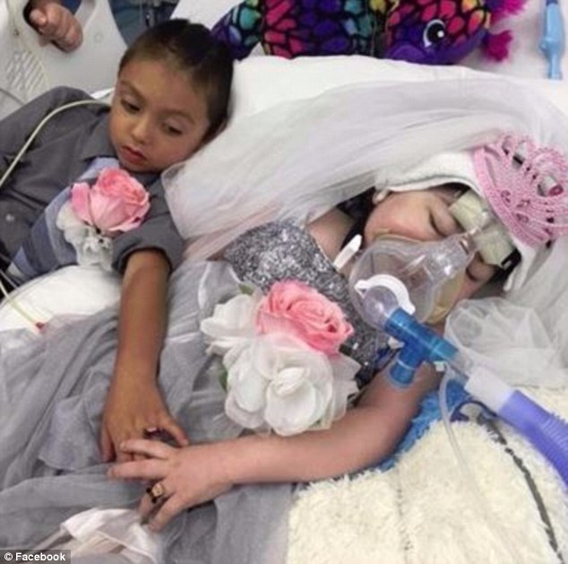 Según detalló el "Daily Mail", el jueves pasado en el Cook Children's Hospital, en Texas, Estados Unidos, se realizó la ceremonia. Mary usó un vestido de princesa de color gris y una corona, mientras que amigo, un traje en el mismo tono.