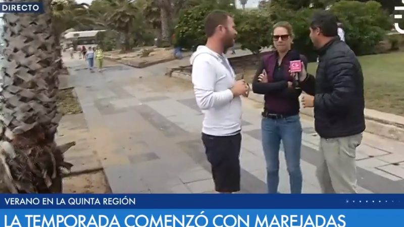 El periodista estaba informando sobre las fuertes olas que se estaban produciendo en Valparaíso justo en el comienzo de la temporada de verano y comenzó a preguntar a los turistas cómo hacían frente al fenómeno.