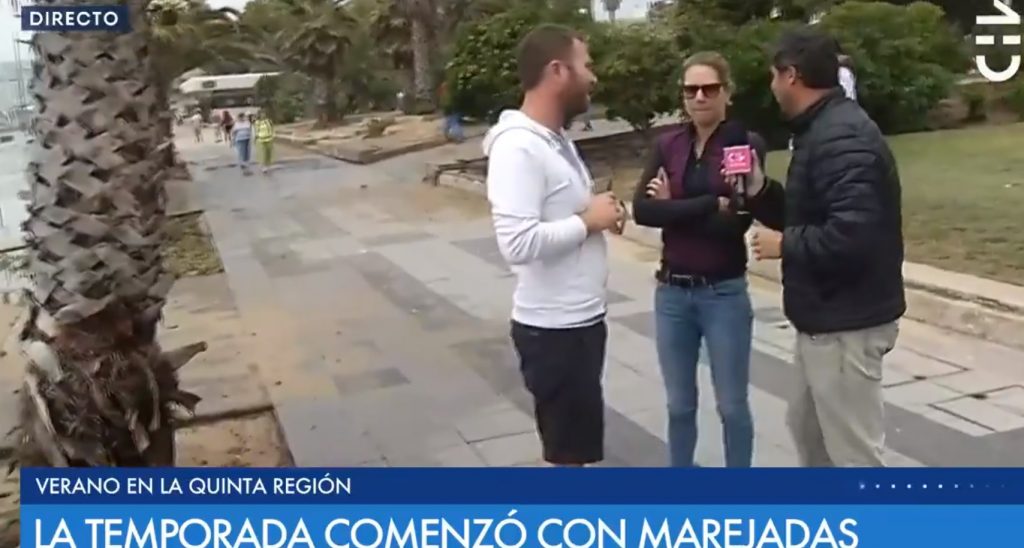 El periodista estaba informando sobre las fuertes olas que se estaban produciendo en Valparaíso justo en el comienzo de la temporada de verano y comenzó a preguntar a los turistas cómo hacían frente al fenómeno.
