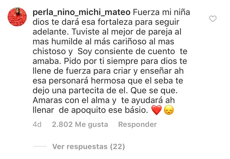 "Fuerza mi niña, Diós te dará esa fortaleza para seguir adelante. Tuviste al mejor de pareja, al más humilde, al más cariñoso, al más chistoso", partió diciendo la gitana, quien agregó: "pido por ti siempre para Dios te llene de fuerza para criar y enseñar a esa persona hermosa que el Seba te dejó una partecita de él".