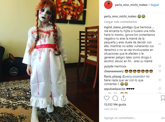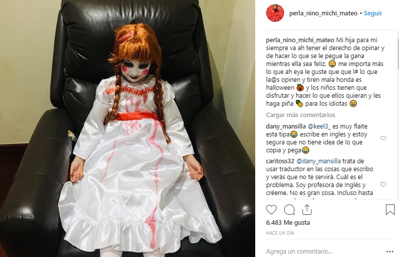 El más criticado fue el de la pequeña, que quiso disfrazarse de la muñeca "Annabelle", que se veía muy realista y por eso muchos usuarios consideraron que no era apropiado para su edad.