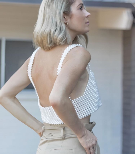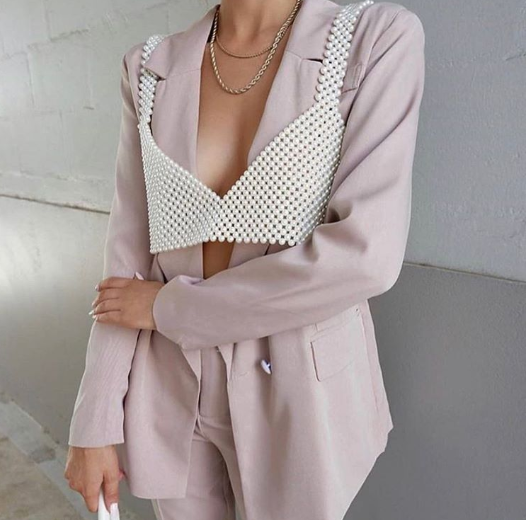 Sin embargo, una prenda está causando furor en las redes sociales y se trata nada menos que de un sujetador o top de perlas con tirantes.