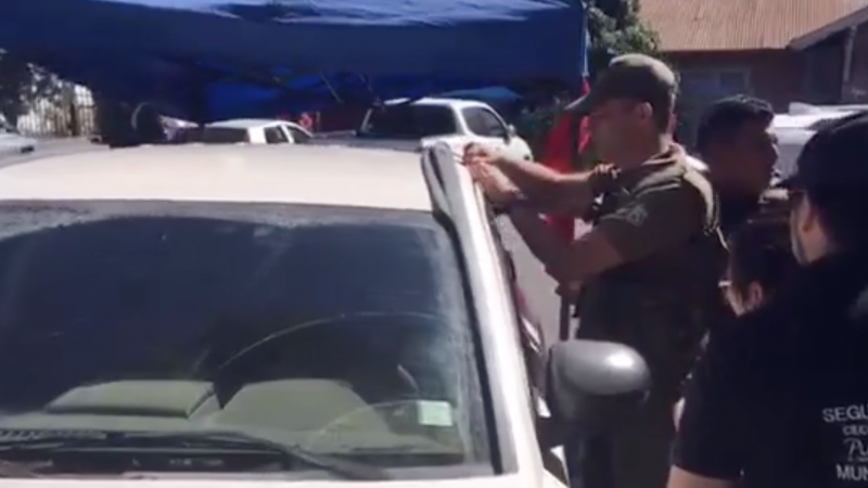 Luego de que los peatones se percataran que el animal estuvo aislado por más de una hora con más de 30 grados de calor, Carabineros llegó hasta el lugar y pretendían romper uno de los vidrios, para así liberar al animal.