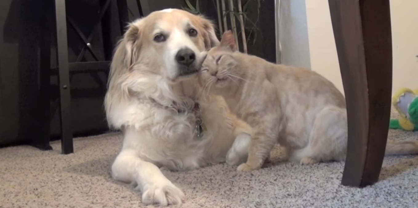 En el video se puede ver el momento en que el gato (Thomas), se acurruca sobre Murkin (perro), durante varios minutos.