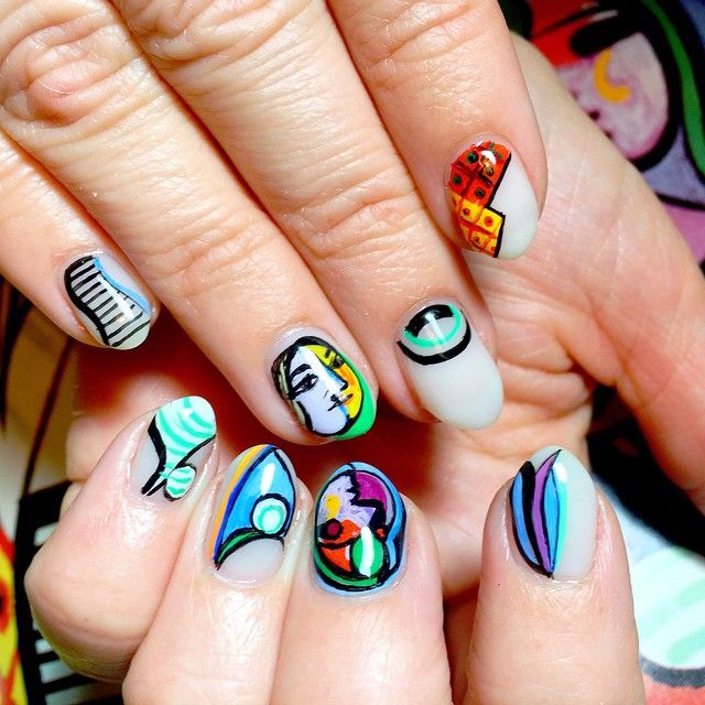 También puedes variar con colores más fuertes, dibujos de rostros o en base a cubos. La esencia de esta manicure está en las pinceladas geométricas y desiguales tan características de la obra de Picasso.