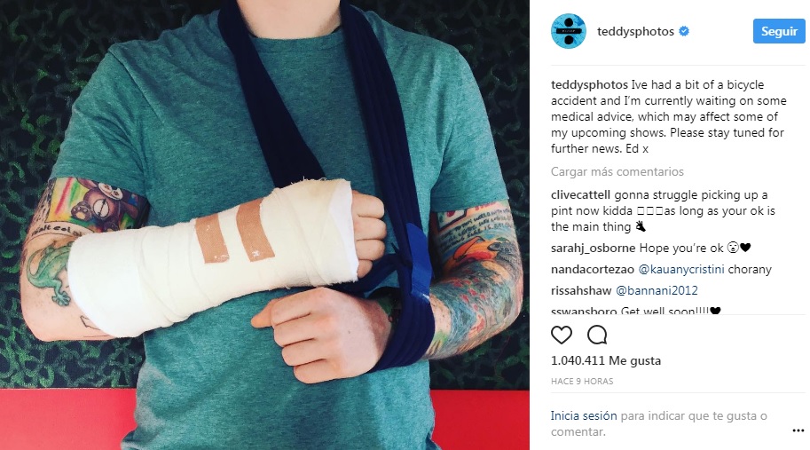 Atención todos los fans de Ed Sheeran, igual que nosotros….nuestro colorín favorito subió una foto enyesado en sus redes sociales.