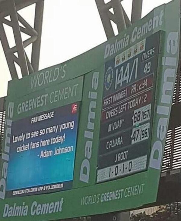 Pero la pequeña niña no fue la única protagonista de las particulares bromas. También apareció un mensaje que sería de Adam Johnson, un futbolista condenado por abuso sexual de menores: "Encantado de ver tantos jóvenes fanáticos de cricket aquí hoy".