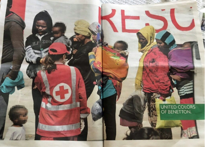 La firma italiana ha incluido en su publicidad imágenes de un grupo de los inmigrantes del barco "Aquarius", que llegaron a España el pasado domingo, después de ser rescatados en aguas internacionales.