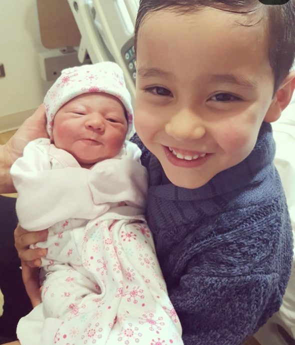 En otra de las imágenes, la joven mostró a la bebé junto a su hermano mayor, quien nació fruto de una antigua relación de Sebastián Leiva.
