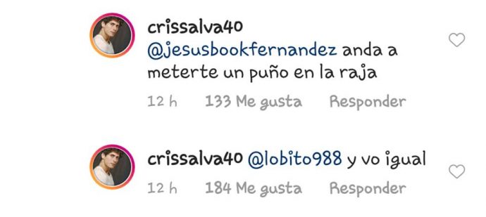 Tras esto, muchos de los comentarios eran muy ordinarios, donde destaca uno que hizo un cibernauta que provocó que el pololo y ex chico reality, Cristóbal Álvarez, respondiera de vuelta bien enojado.