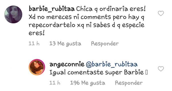 Pero el no fue el único que contesto, sino que la misma Ángela decidió responderle a una usuaria que la criticó.