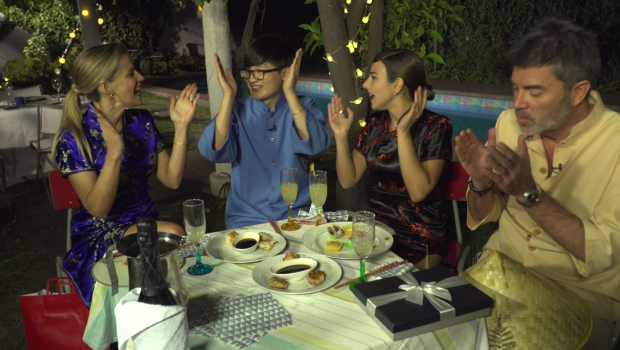 Este sábado los participante de una nueva versión del programa Divina Comida, fueron: Patricia Larraín, Yuhui Lee, Juan Carlos Pollo Valdivia y Daniela Castillo, quienes compitieron para convertirse en el mejor chef y anfitrión