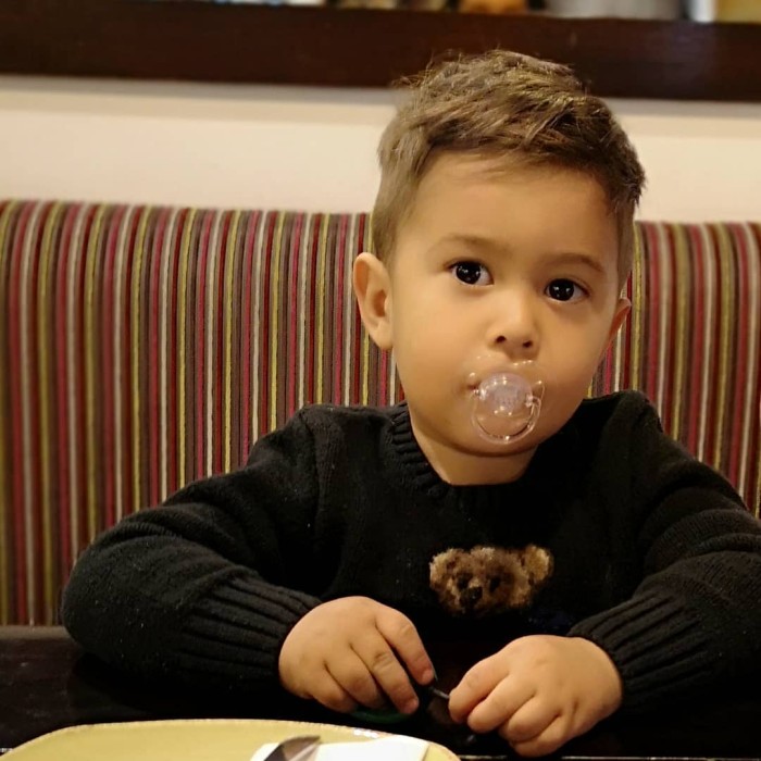 Con un sencillo "Te amo" acompañó la captura, donde el niño de ya dos años se luce con un estiloso corte de cabello.