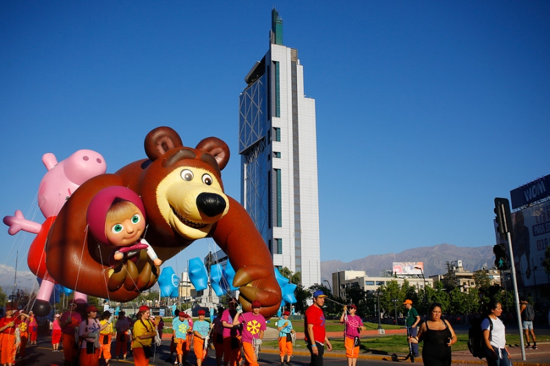 Otras personajes muy conocidos por grandes y chicos desfilaron por las calles del centro de Santiago tal como Peppa Pig, Marshall (Paw Patrol), las Chicas Superpoderosas, Masha y el oso, Billy y Maik, entre otros.