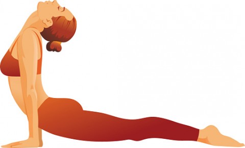 Bhujangasana (Postura de la cobra). Implica una suave dorso-flexión, muy benéfica para aliviar los trastornos digestivos.