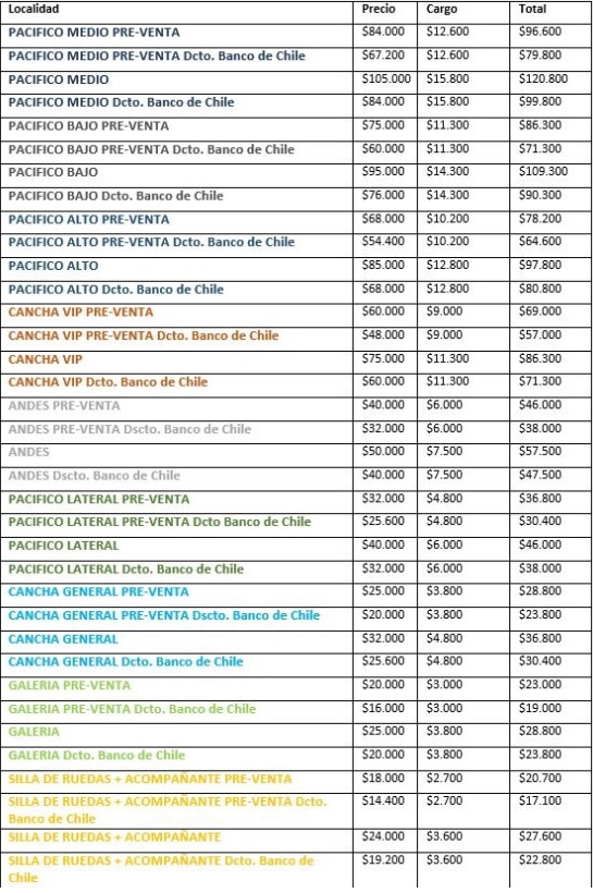 Desde el mediodía del 24 de octubre comienza la venta de entradas para el concierto, mientras que el martes 22 al mediodía se hará una preventa exclusiva para clientes del Banco de Chile.