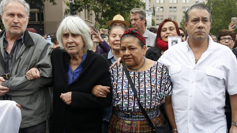 Esta jornada de lunes, la líder guatemalteca y ganadora del Premio Nobel de la Paz en 1992, Rigoberta Menchú, junto al presidente de la Fundación Democracia, Guillermo Whpei, marcharon hacia La Moneda para entregarle una carta al presidente Sebastián Piñera.
