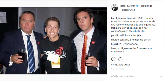 "En el año 2006 conocí a estos dos animadores, yo era locutor de una radio online; les dije que alguna vez trabajaría con ellos… hoy son mis compañeros en #MuchoGusto", escribió junto a la imagen.