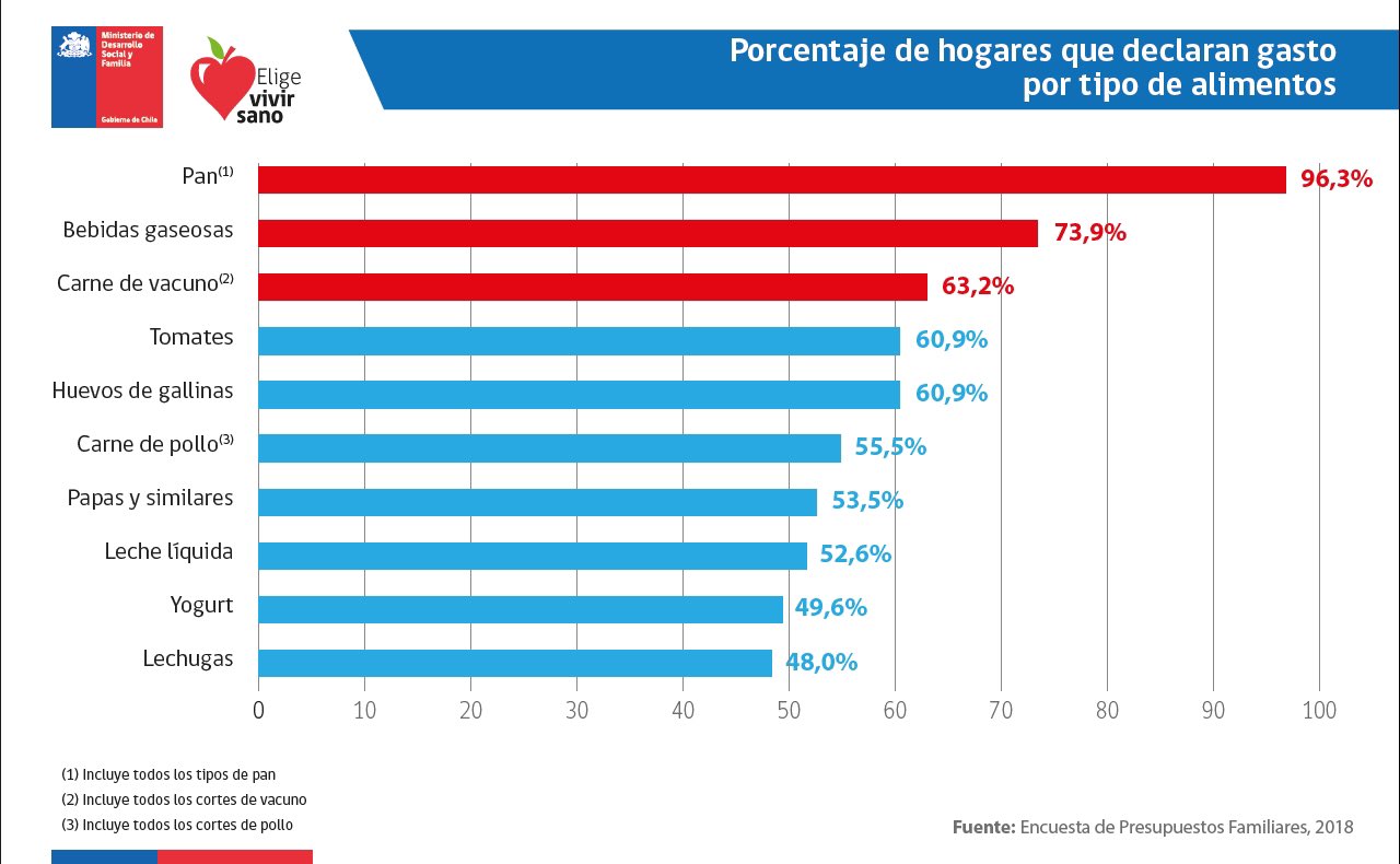 Un reciente estudio del Gobierno dio a conocer que no son pocas las familias chilenas que optan por incluir pan y bebida dentro de sus compras del mes.