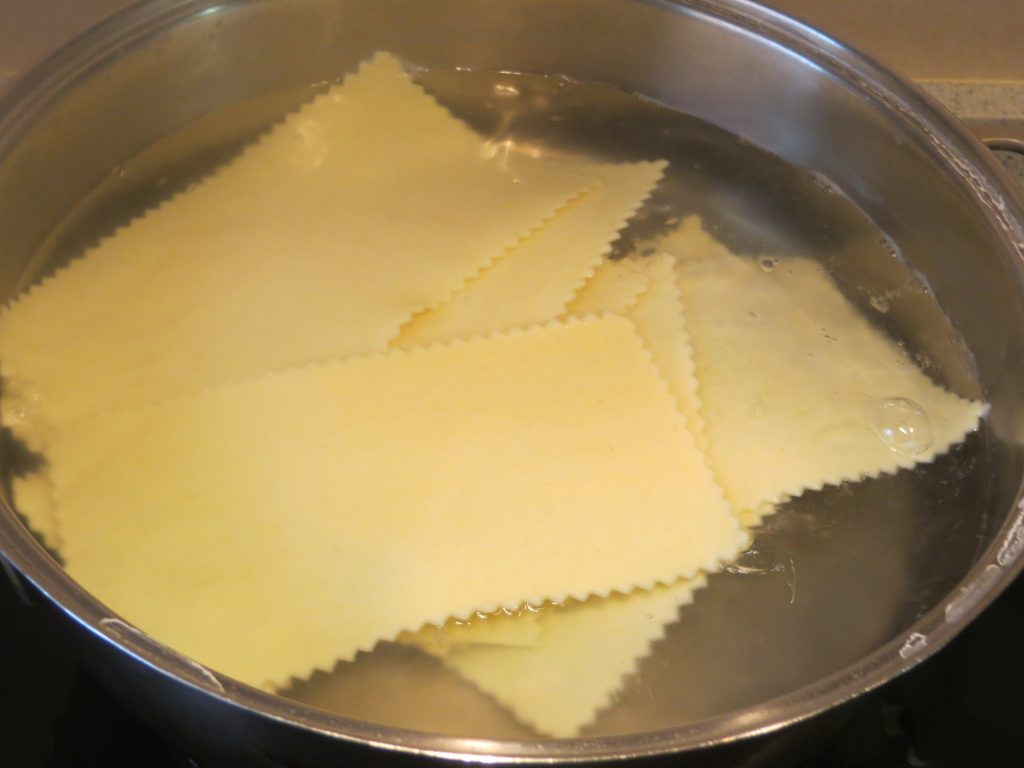 1- Precalienta el horno a 180º grados. Mientras, cocer las láminas de lasaña con sal en una olla de agua hirviendo. Por otro lado, cocer las espinacas pero por 2 minutos para que no reduzcan tanto.