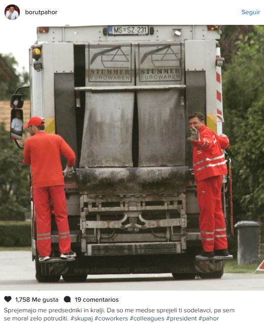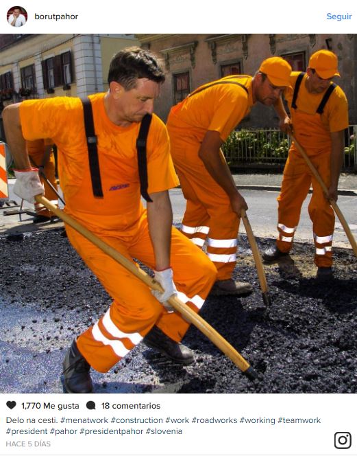 Y Pahor, además, las hace todas. Porque, adicional a su rol como presidente, el hombre de 53 años ha publicado fotos trabajando en la carretera o como recolector de basura, otra junto a la modelo Naomi Campbell o junto al vocalista de U2, Bono.
