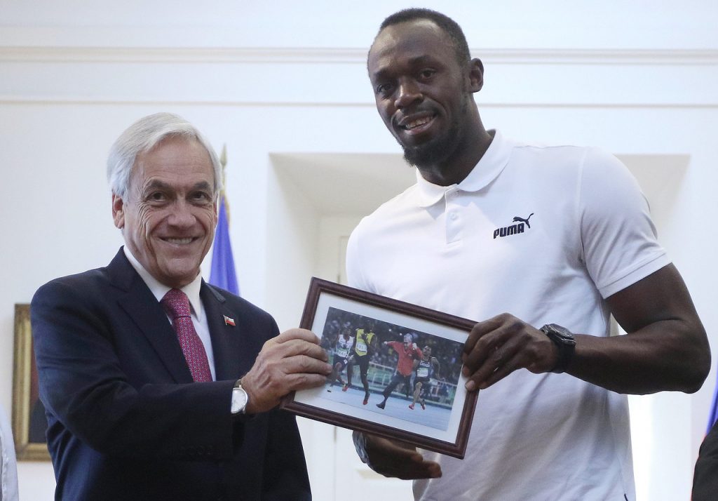 El Presidente Sebastián Piñera recibió este lunes en La Moneda a quien es apodado el mejor atleta de todos los tiempos, el jamaicano Usain Bolt, que está en nuestro país desde este domingo.