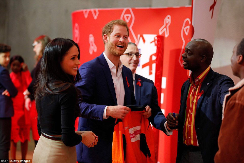 La pareja llegó hasta el National Justice Museum para participar de un evento por el Día Mundial contra el sida. La actriz de 36 años señaló estar contenta y emocionada de su primera actividad real diciendo "que era increíble".