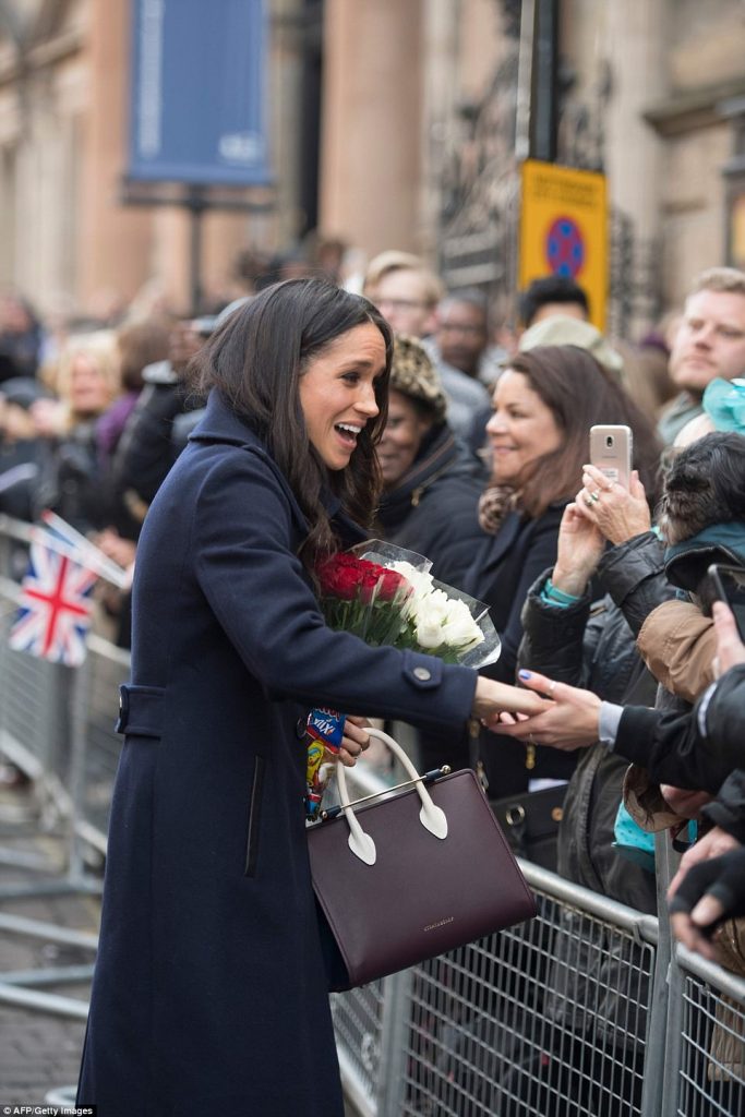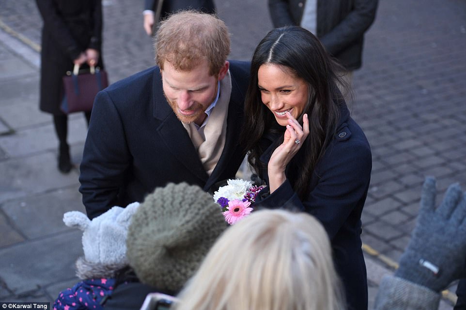 Harry y Meghan Markle viajaron hasta Nottingham, al norte de Londres, donde fueron recibidos por cientos de fanáticos quienes hasta le llevaron flores y regalos.