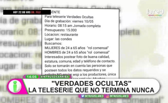 Y con respecto al llamado a casting que develó el programa de La Red, lo que se buscaba eran "comensales" -hombres y mujeres-, de entre 24 y 65 años.