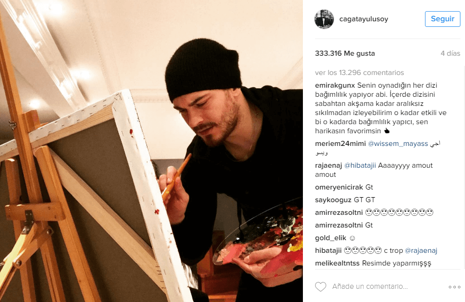 Y no hay duda de que todo lo que Cagatay Ulusoy, protagonista de "Medcezir" y "El secreto de Feriha", hace saca suspiros entre sus fans. Según informa el sitio web mega.cl, el galán de 26 años le gusta arte y como una forma de compartir con sus seguidoras esta pasión, posteó en su cuenta de Instagram una instantánea donde se luce pintando.