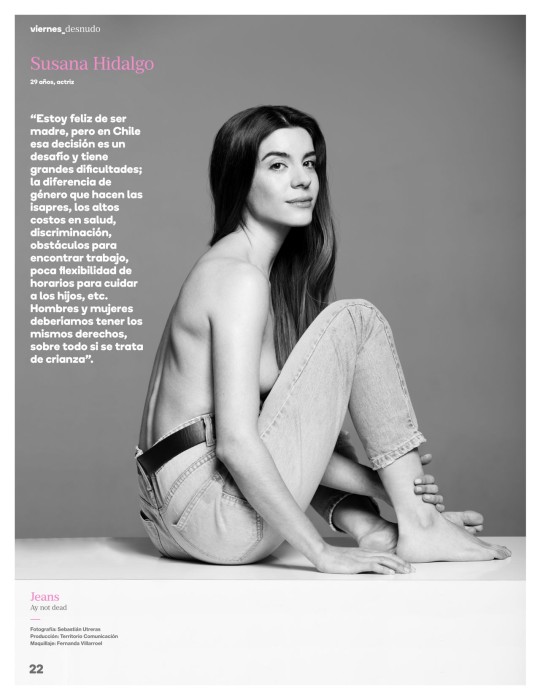La actriz apareció posando solo usando unos jeans y aprovechó de reflexionar sobre la maternidad. "Estoy feliz de ser madre, pero en Chile esa decisión es un desafío y tiene grandes dificultades; la diferencia de género que hacen las isapres, los altos costos en salud, discriminación, obstáculos para encontrar trabajo, poca flexibilidad de horarios para cuidar a los hijos, etcétera. Hombres y mujeres deberíamos tener los mismos derechos, sobre todo si se trata de crianza", opinó.
