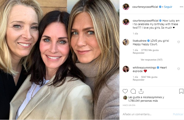 Y es que la cumpleañera publicó en su cuenta de Instagram una foto en la que posa junto a Jennifer Aniston y Lisa Kudrow.