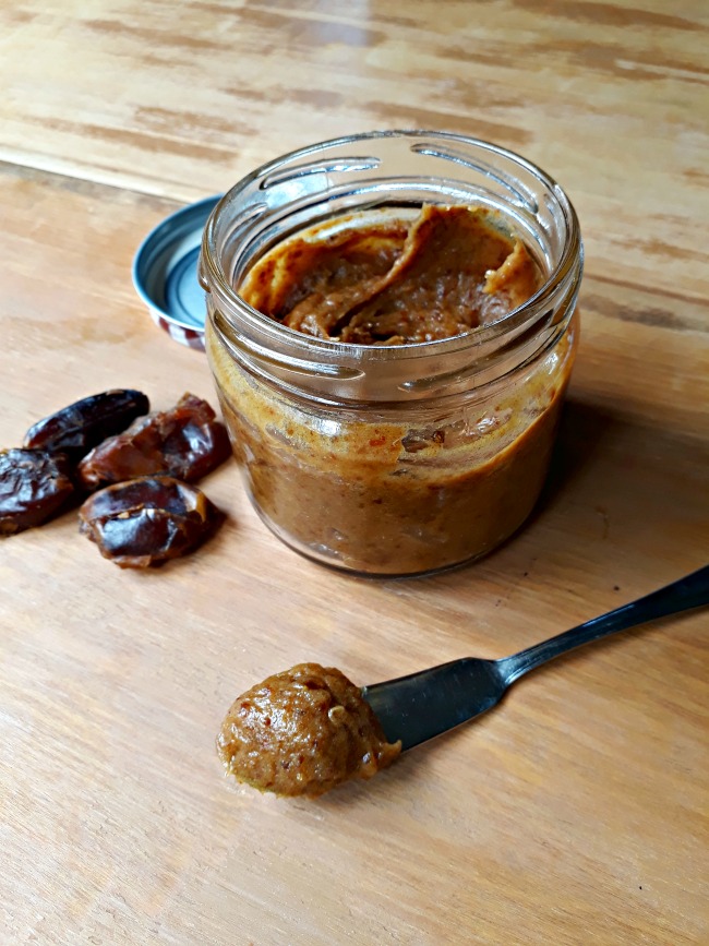 Finalmente, echa toda la mezcla en un frasco y ¡listo! Ya tienes un rico y saludable manjar de dátiles.