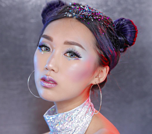 Se trata del maquillaje holográfico, el cual se basa una mezcla de brillos metálicos con colores como el morado, azul, verde y plata. La idea es que tu rostro luzca iluminado.