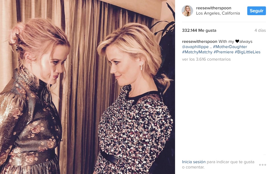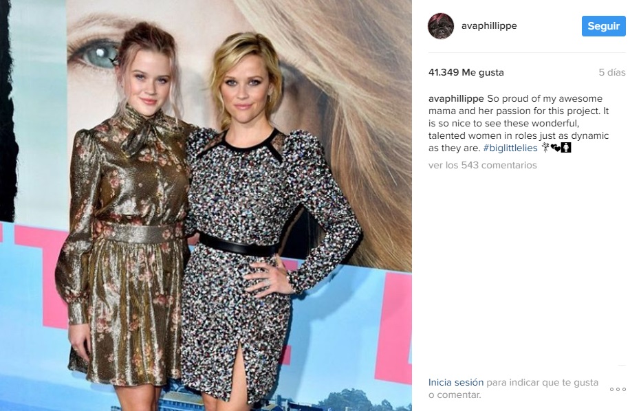 Ambas llamaron la atención de sus fans al notar que son muy parecidas e incluso varios no podían identificar quién era quién. "Mi amor siempre Ava Phillippe #MadreEHija #Premiere #BigLittleLies", escribió la ganadora del Oscar en la red social.