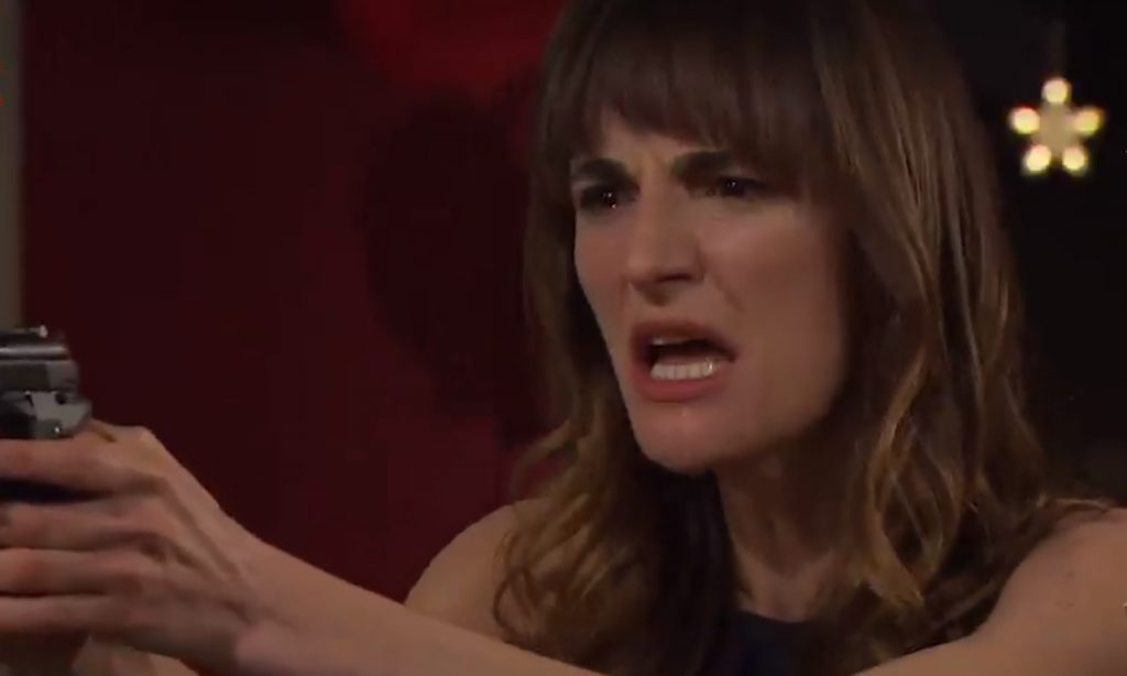 La aliada de Eliana irrumpirá la celebración, llegando sumamente alterada y Diego le pregunta qué hace en el pasaje. "Tú no me hables, traidor. No van a ser felices juntos, ¡no lo voy a permitir!", le responde Valentina, sacando un arma y apuntando en dirección a él, Rocío y Agustina.