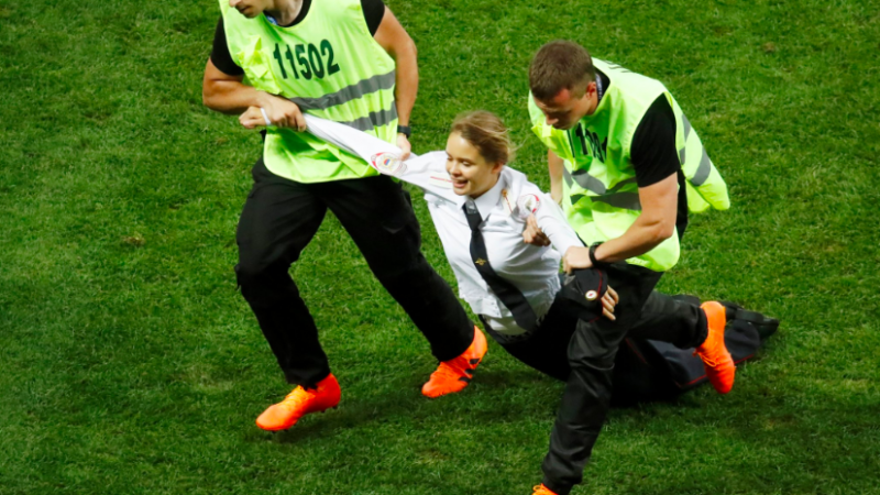 El grupo de activistas y música punk de Rusia, Pussy Riot, se atribuyó la invasion a la cancha que realizaron cuatro personas y que interrumpió la final de la Copa del Mundo entre Francia y Croacia.