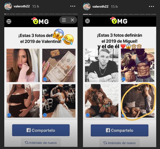 En esta extensión de Facebook, ‘3 fotos que definirán tu 2019’, la ex “Calle 7” tendría en su "futuro" del próximo año un 'embarazo' lo que sorprendió a la Valentina, que reaccionó con emojis de risa y sorpresa ante su futuro 2019.