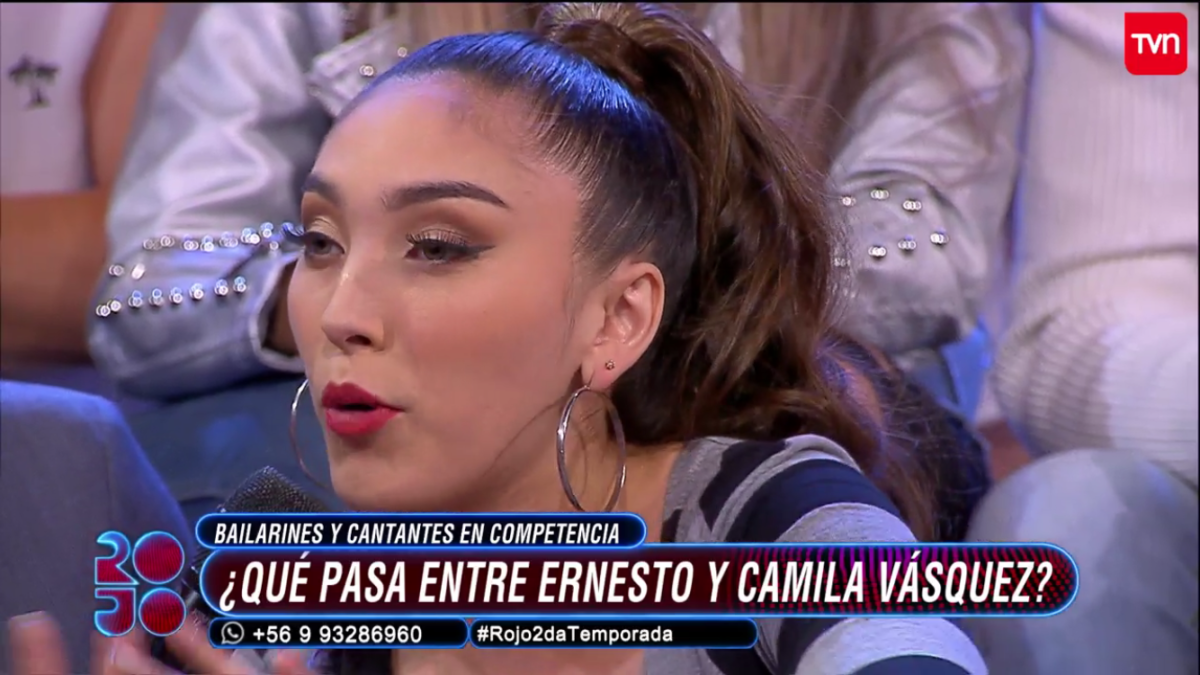 Pero Piamaría continuó.“¿Camila no estaba pololeando?”, le preguntó a Camila, quien contestó: "no estoy pololeando, y mi último pololo fue Gabriel, con quien bailé aquí varias veces. ¿Qué más quieres saber? ¿Quieres pantalla? ¿Qué quieres saber?”, le respondió seriamente Vásquez.
