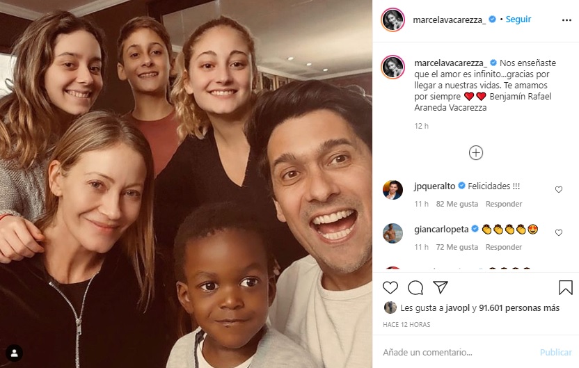Los rostros de televisión Rafael Araneda y Marcela Vacarezza anunciaron por un en vivo en Instagram que nuevamente se habían convertido en padres. Benjamín Rafael Araneda Vacarezza es el nombre del pequeño que llegó a su familia tras un largo proceso de adopción.