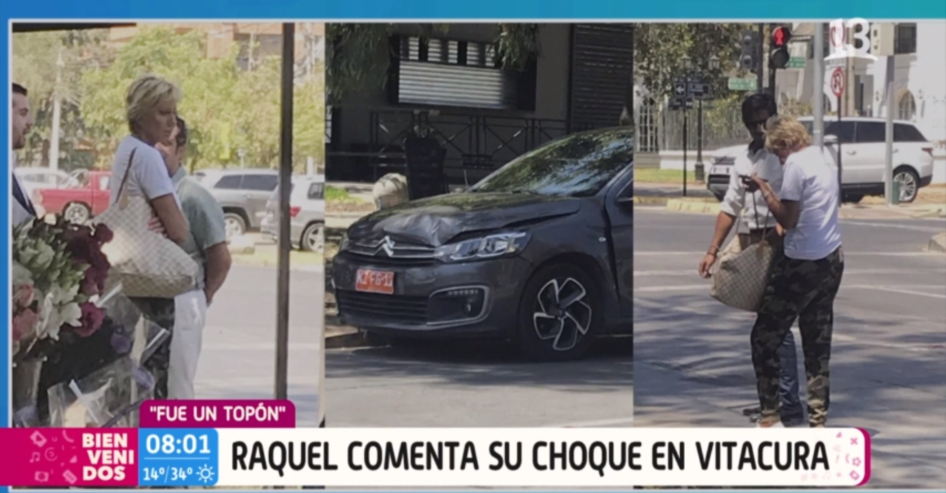 La tarde de este martes Raquel Argandoña hizo noticia en algunos medios debido a un accidente automovilístico en Vitacura. La coanimadora de "Bienvenidos" chocó al intentar doblar a la izquierda en la intersección de Nueva Costanera con Alonso de Córdova.